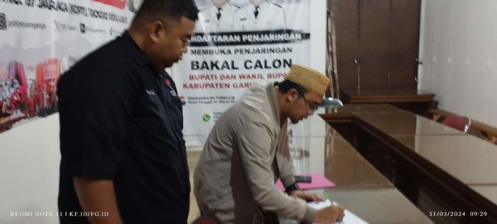 Proses pengambilan formulir menjadi penanda Tokoh Muda NU, Kepala STIMB syariah NU, ketua LPM Ma’arif serta pimpinan Ponpes Fauzan Garut itu maju pada kontestasi Pilkada Bupati dan Wakil Bupati Garut pada tahun 2024.