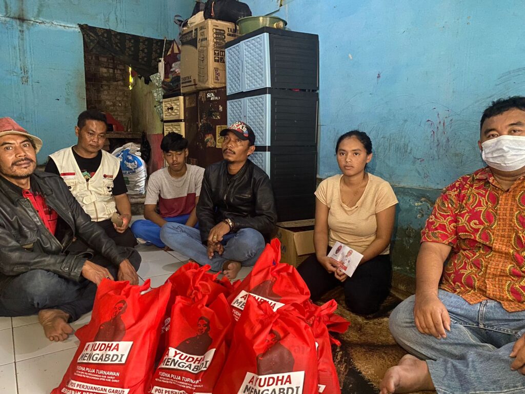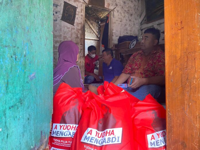 Dalam kunjungan nya Yudha Puja Turnawan memberikan bingkisan 10 paket sembako dan santunan uang tunai Rp. 1.000.000.00 (Satu Juta Rupiah) dari Anggota DPR RI Dony Maryadi Oekon kepada masing-masing korban rumah roboh.