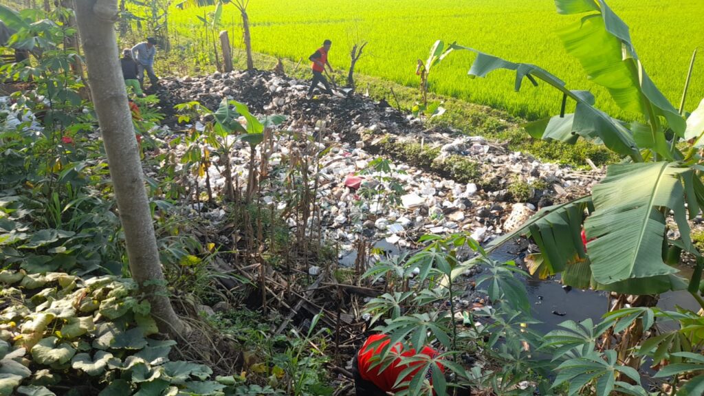 Sampah tersebut menyumbat aliran irigasi, diantaranya berupa limbah rumah tangga, diapers, segala macam plastik, baju bekas, dan bangkai hewan serta kotoran.