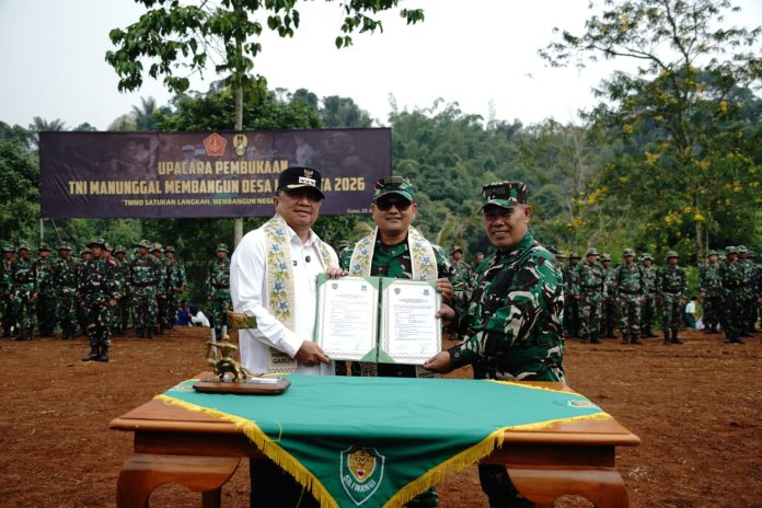 KORAN-FAKTA.ID – Bupati Garut, Abdusy Syakur Amin, menghadiri secara langsung pembukaan program TNI Manunggal Membangun Desa (TMMD) ke-128 Tahun 2026 yang dilaksanakan di Lapangan Situ Ciranca, Desa Mekarmulya, Kecamatan Malangbong, Rabu (22/4/2026).