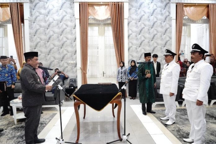 KORAN-FAKTA.ID – Bupati Garut, Abdusy Syakur Amin, secara resmi mengambil sumpah dan melantik dua Kepala Desa Pemilihan Antar Waktu (PAW) di Ruang Pamengkang, Kecamatan Garut Kota, Senin (27/4/2026).