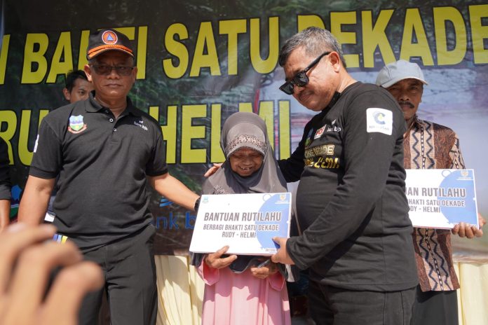 Kegiata Dalam rangka Satu Dekade Kepemimpinan Rudy-Helmi ini dilaksanakan pada Jum’at (06/10/2023), melibatkan 257 orang dari berbagai entitas, termasuk komunitas Motor Aparatur Pemda Garut atau MARAG. Mereka membagikan 400 paket sembako, 200 paket student kit, 150 paket perlengkapan ibadah yang berisi alquran, sarung, mukena, dan sejadah. Selain itu, ada juga bantuan untuk 6 unit Rumah Tidak Layak Huni (Rutilahu) di 3 kecamatan, yaitu Kecamatan Cisompet, Cibalong, dan Peundeuy.(*)