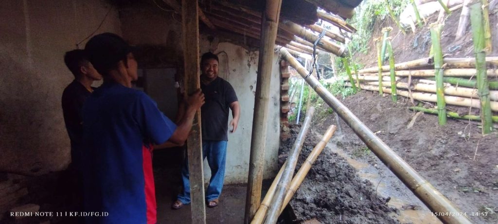 KORAN-FAKTA.ID – Hari Senin 15 April 2024, Anggota DPRD Garut Yudha Puja Turnawan didampingi Kasi Kesra Kelurahan Cimuncang Agus, mengunjungi pak Yaya Maryadin seorang guru ngaji yang dinding rumahnya rubuh akibat terkena longsoran tanah di kampung Balariuk RT 01 RW 11 Kelurahan Cimuncang Kecamatan Garut kota. Kabupaten Garut