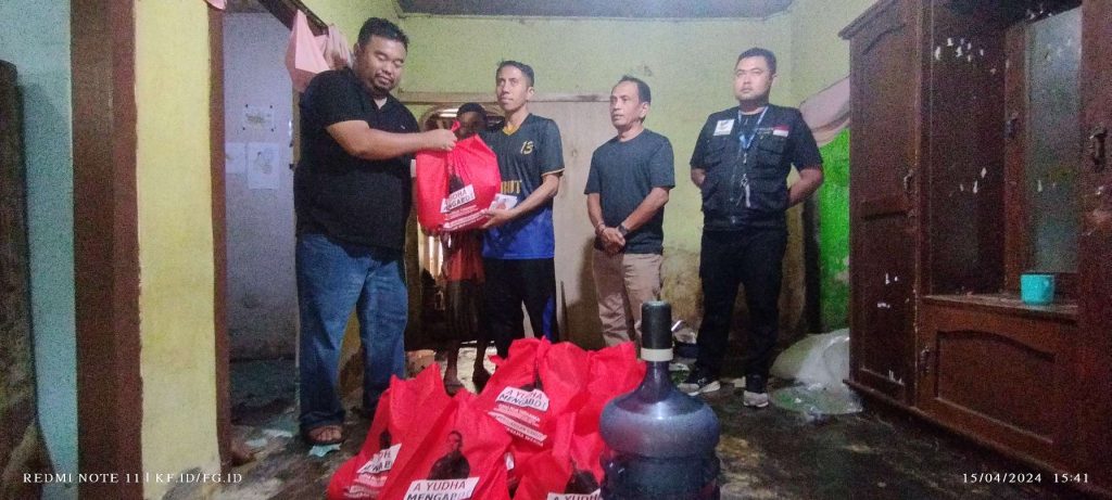 kedatangan Yudha Puja Turnawan untuk menguatkan hati dan meringankan beban kang Yaya Maryadin beserta keluarganya dengan memberikan santunan sembako dan uang tunai.