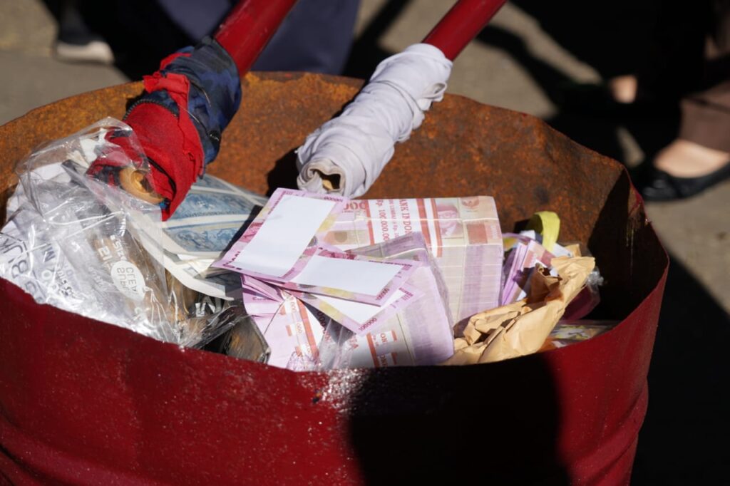 “Ada ribuan botol yang hari ini akan kita musnahkan, kemudian juga hari ini alhamdulilah diwakili juga dihadiri juga oleh perwakilan dari Bank Indonesia, ada sekian miliar uang palsu yang ternyata juga beredar di Kabupaten Garut,” ucapnya.
