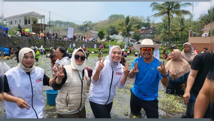 Keseruan Kampanye Putri Karlina Turun Kekolam Tangkap Ikan Bersama Warga