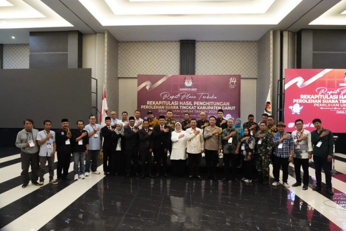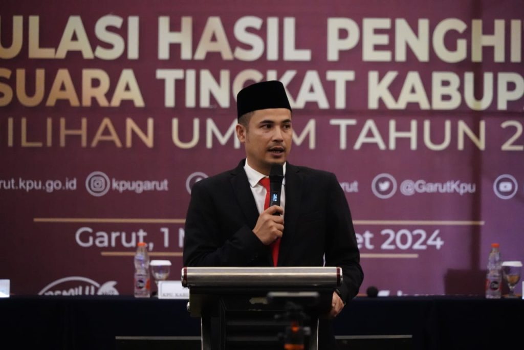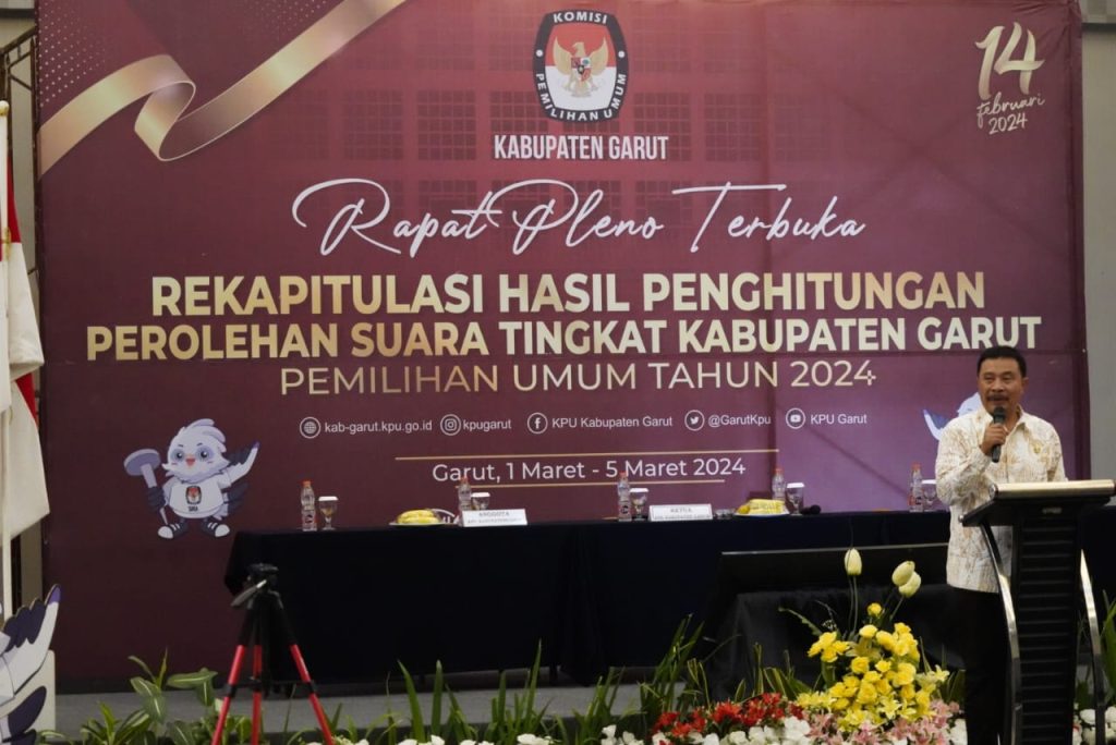 KORAN-FAKTA.ID – Komisi Pemilihan Umum (KPU) Kabupaten Garut menggelar Rapat Pleno Terbuka Rekapitulasi Hasil Penghitungan Perolehan Suara tingkat Kabupaten Garut pada Pemilihan Umum (Pemilu) Tahun 2024, yang dilaksanakan di Ballroom Hotel Harmoni, Jalan Cipanas Baru, Kecamatan Kabupaten Garut, Jum’at (01/03/2024).
