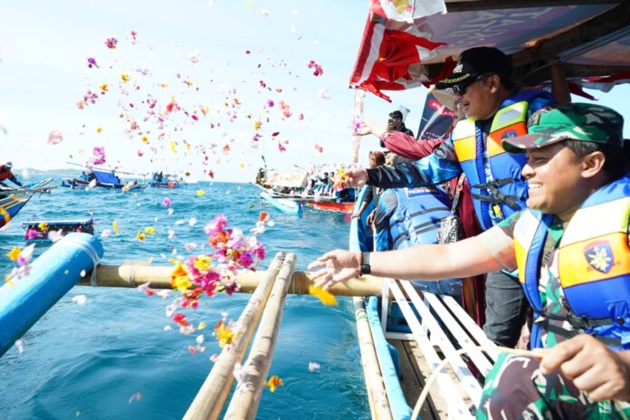 KORAN-FAKTA.ID – Pantai Santolo di Kecamatan Cikelet, Kabupaten Garut, menjadi saksi bagi para nelayan yang merayakan kegembiraan dan rasa syukur dalam acara Tasyakur Bi ni’mah, Senin (14/08/2023). Acara tersebut dihadiri oleh Bupati Garut, Rudy Gunawan, Komandan Kodim (Dandim) 0611/Garut, Letkol Czi Dhanisworo, dan sejumlah tamu undangan terhormat.