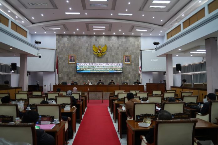 KORAN-FAKTA.ID – Kamis (30/11/2023, Bupati Garut, Rudy Gunawan, menghadiri Rapat Paripurna DPRD Garut di Ruang Rapat Paripurna DPRD Garut. Acara ini juga menjadi momen penandatanganan Nota Kesepakatan Program Pembentukan Peraturan Daerah (Propemperda) yang dilakukan Bupati Garut, Rudy Gunawan, Ketua DPRD Kabupaten Garut, Euis Ida Wartiah, dan Wakil Ketua DPRD Garut, Enan.