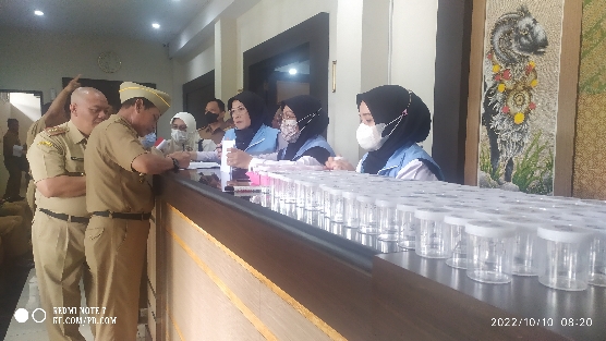 KORAN-FAKTA.ID, – Pemerintah Kabupaten (Pemkab) Garut bekerja sama dengan Badan Nasional Narkotika Kabupaten (BNNK) Garut, melaksanakan skrining narkotika melalui tes urine kepada hampir 380 pegawainya seusai melaksanakan Apel Gabungan, di Lapang Sekretariat Daerah (Setda) Garut, Jalan Pembangunan, Kecamatan Tarogong Kidul, Kabupaten Garut, Senin (10/10/2022). dari 380 pegawai tersebut termasuk di dalamnya Bupati Garut, Wakil Bupati dan Sekda.