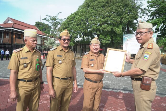 KORAN-FAKTA.ID, – Pemerintah Kabupaten (Pemkab) Garut melalui Dinas Penanaman Modal dan Pelayanan Terpadu Satu Pintu (DPMPTSP) Garut meraih penghargaan sebagai daerah dengan Nomor Induk Berusaha (NIB) tertinggi kedua di Jawa Barat. Penghargaan secara simbolis diberikan oleh Bupati Garut, Rudy Gunawan bersamaan dengan apel gabungan terbatas yang dilaksanakan di Lapangan Sekretariat Daerah (Setda), Jalan Pembangunan, Kecamatan Tarogong Kidul, Kabupaten Garut, Senin (10/10/2022).