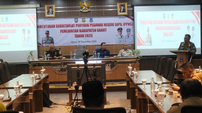 KORAN-FAKTA.ID – Pemerintah Kabupaten Garut memperkuat penegakan Peraturan Daerah dan Peraturan Kepala Daerah melalui kegiatan Koordinasi Penyidik Pegawai Negeri Sipil (PPNS) yang dibuka oleh Kepala Satuan Polisi Pamong Praja Kabupaten Garut, Ganda Permana, di Aula Bappeda Kabupaten Garut, Jalan Patriot, Kecamatan Tarogong Kidul, Senin (29/12/2025).