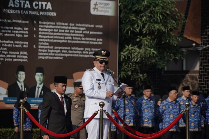 KORAN-FAKTA.ID – Bupati Garut, Abdusy Syakur Amin, bertindak sebagai Inspektur Upacara pada Peringatan Hari Otonomi Daerah (Otda) ke-30 Tingkat Kabupaten Garut. Upacara khidmat ini dilaksanakan di Lapangan Sekretariat Daerah, Jalan Pembangunan, Kecamatan Tarogong Kidul, Senin (27/4/2026).