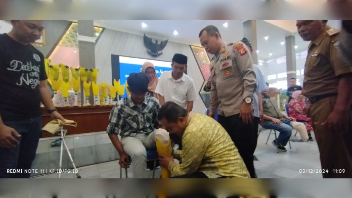 KORAN-FAKTA.ID – Setiap tanggal 3 Desember diperingati sebagai Hari Disabilitas Internasional (HDI) sebagai wujud penghormatan terhadap hak-hak serta kesejahteraan penyandang disabilitas. Dalam rangka memperingati HDI tahun 2024, Bank Indonesia, bekerjasama dengan Dinas Sosial Kabupaten Garut, Yayasan Bina Bangsa Berdikari Tangerang Selatan dan Yayasan Garuda Eka Paksi (Gepak) Garut menyelenggarakan berbagai kegiatan, di antaranya penyuluhan sadar diabetes, penyaluran sembako, dan bantuan kaki palsu bagi penyandang disabilitas. Acara ini digelar di Pendopo Kabupaten Garut, Jl. Kiansantang, Kecamatan Garut Kota, Kabupaten Garut, Jawa Barat, pada Selasa (3 Desember 2024).