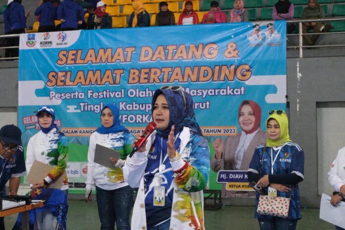 KORAN-FAKTA.ID – Ketua Komite Olahraga Masyarakat Indonesia (KORMI) Kabupaten Garut, Hj Diah Kurniasari, membuka secara resmi pelaksanaan Festival Olahraga Rekreasi Masyarakat Kabupaten (FORKAB) Garut Tahun 2023 yang berlangsung di Sarana Olahraga (SOR) RAA Adiwijaya, Jalan Proklamasi, Kecamatan Tarogong Kidul, Kabupaten Garut, Jum’at (8/9/2023).
