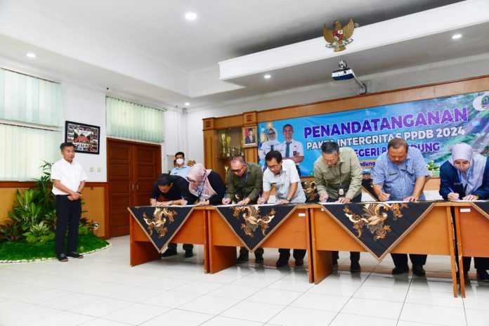 KORAN-FAKTA.ID , KOTA BANDUNG — Penjabat Gubernur Jawa Barat Bey Machmudin menyaksikan penandatanganan pakta integritas pelaksanaan Pendaftaran Peserta Didik Baru (PPDB) Jabar 2024 yang bersih, transaparan, berintegritas, dan berkeadilan.