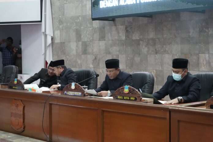 KORAN-FAKTA.ID, – Bupati Garut, Rudy Gunawan menghadiri Rapat Paripurna dalam rangka Pembahasan 12 Rancangan Peraturan Daerah (Raperda) Kabupaten Garut, dengan acara pokok Kata Akhir Fraksi dan Keputusan DPRD, berlangsung di Ruang Rapat Paripurna DPRD Garut, Jalan Patriot, Kecamatan Tarogong Kidul, Kabupaten Garut, Jum’at (21/10/2022). Rapat Paripurna DPRD Kabupaten Garut dipimpinan Wakil Ketua DPRD, Enan.