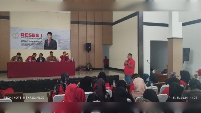 KORAN-FAKTA.ID – Anggota DPRD Provinsi Jawa Barat dari Fraksi PDI Perjuangan Dapil XIV, Memo Hermawan, melaksanakan Reses Masa Sidang I Tahun 2024 yang bertempat di Gedung Lasminingrat, Kecamatan Garut Kota, Kabupaten Garut, Jawa Barat, pada Senin (11 November 2024).