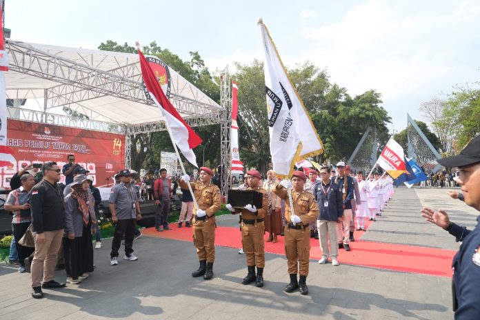 KORAN-FAKTA.ID – Komisi Pemilihan Umum (KPU) Kabupaten Garut menerima Bendera Kirab Partai Politik Tahun 2024 dari KPU Kabupaten Sumedang. Acara ini berlangsung di Lapangan Oto Iskandar Di Nata, Kecamatan Garut Kota, Kabupaten Garut, Sabtu (14/10/2023). Turut dihadiri Wakil Bupati Garut, dr. Helmi Budiman, Ketua DPRD Kabupaten Garut, dan para pengurus 18 partai politik
