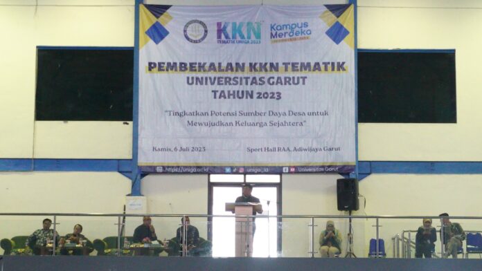 KORAN-FAKTA.ID – Universitas Garut (Uniga) menggelar acara Pembekalan Kuliah Kerja Nyata (KKN) Tematik Uniga Tahun 2023 dengan tema “Tingkatkan Potensi Sumber Data Desa untuk Mewujudkan Keluarga Sejahtera”, yang dilaksanakan di Sport Hall R.A.A Adiwijaya, Kecamatan Tarogong Kidul, Kabupaten Garut, Kamis (06/07/2023).