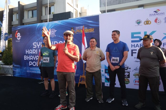 KORAN-FAKTA,ID – Wakil Bupati Garut, dr. Helmi Budiman, membuka dengan meriah kegiatan 5 KM Fun Run Harmoni Ceria dalam perayaan Hari Ulang Tahun Hotel Harmoni Garut yang ke-5. Acara berlangsung meriah di Pelataran Parkir Hotel Harmoni, Jalan Raya Cipanas Baru, Kecamatan Tarogong Kaler, Kabupaten Garut, Minggu (3/9/2023). Sebanyak 350 peserta ikut ambil bagian dalam olah raga lari menyenangkan ini